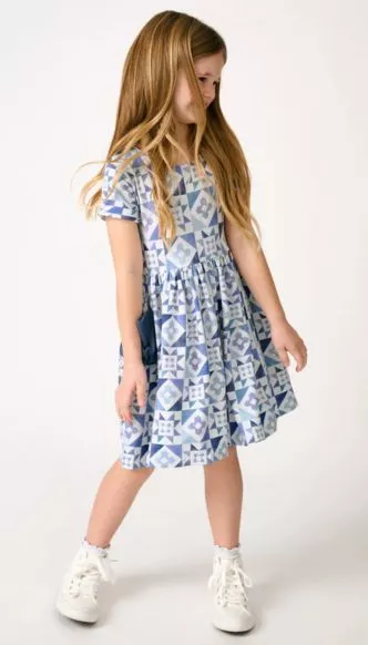 This playful dress combines charming design with comfortable functionality, making it perfect for outdoor outings and casual family events.